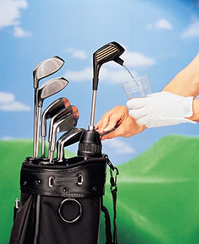 The Club Champ Kooler Klub golf bag drink dispenser fits into most golf bags and looks like a regular golf club The easy pump dispenser located in the ‘head’ of the mock 3-wood transfers your favorite beverage into a cup on the golf course. Holds enough for yourself or your foursome and hides conveniently away in your golf bag. What a great gift