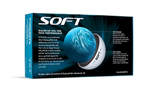 Pinnacle Soft is designed to give golfers an incredibly soft feel and help them hit the ball longer. The high energy, low compression core combined with a soft cover and advanced 332 icosahedral dimple design create low spin for longer shots and a soft feel.