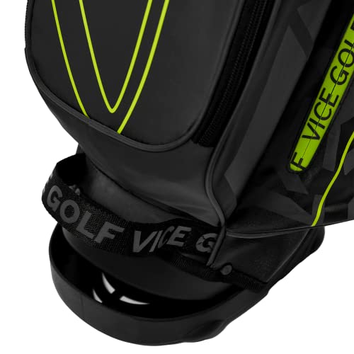 The vice golf bag’s 7/8th-length, 4-compartment divider allows golf clubs to be organized all the way to the bottom. The 5-pocket design offers convenient and flexible storage options with a magnetic pocket above the ball pocket for stowing a golf laser or other accessories. For easy transport, the VICE SMART Bag includes an integrated ergonomic handle at the top of the bag.